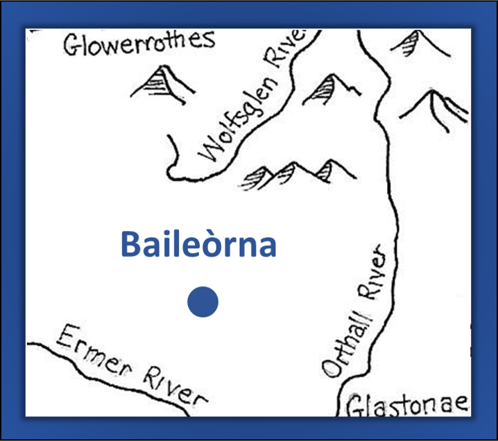 Baileòrna – Castle town and stewardship of Albaron, location of the barley fields and much of the richest, most arable land in Albaron. Much of its northern territory was once part of the Hilbregh Forest, which it shares in part with the Stewardship of Glowerrothes. Timber from the forest’s hearty trees helped to build the city’s defenses and palisade walls, which are still its primary defense as it slowly transitions to defenses built from stone. Bordered by the Ermer River to the south and the Lower Albar Mountains to the east, it is generally considered secure and has historically relied on Leiroc as a warning outpost of attack to draw needed defenses to its aid from Dirkforge and Glowerrothes.